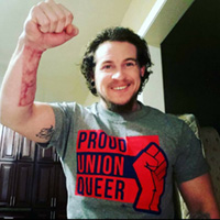 Después de dejar la universidad, busqué una comunidad profesional que pudiera acomodar mi pasión por los problemas de los trabajadores y los problemas que afectan desproporcionadamente las vidas LGBTQ+ y BIPOC en este país. Después de muchos años, finalmente encontré otras voces dentro de mi sindicato y tengo el privilegio de trabajar con otros miembros de la comunidad LGBTQ+ para amplificar las necesidades y las voces de los miembros de nuestra unión.