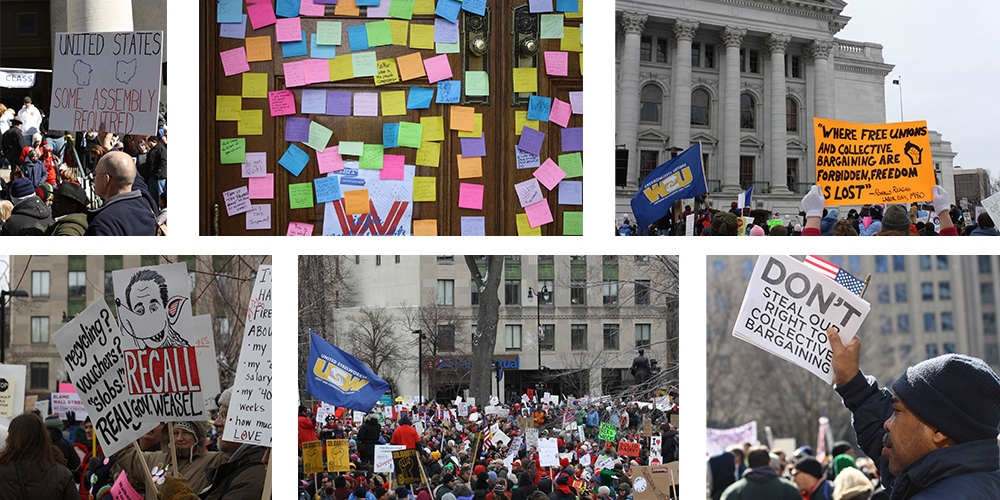 Photos taken in 2010 during the demonstrations at the capitol in Madison, Wis., during the fight against “Right to Work.”