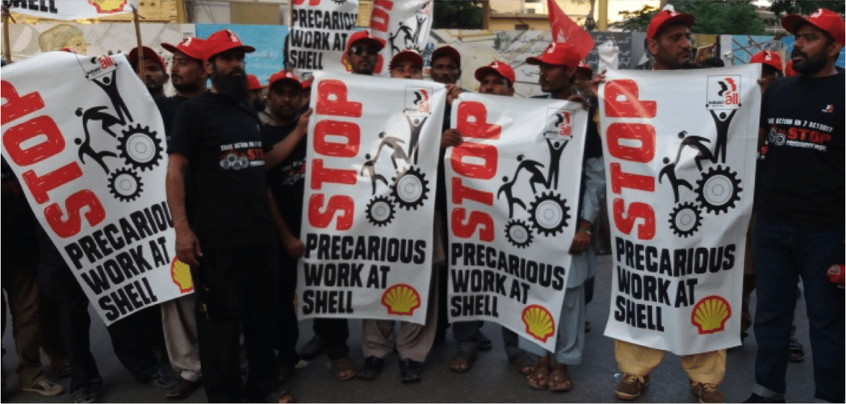 The network organized a global day of action to stop precarious work – working people from Pakistan, Brazil, Nigeria, Ghana and Iraq participated.