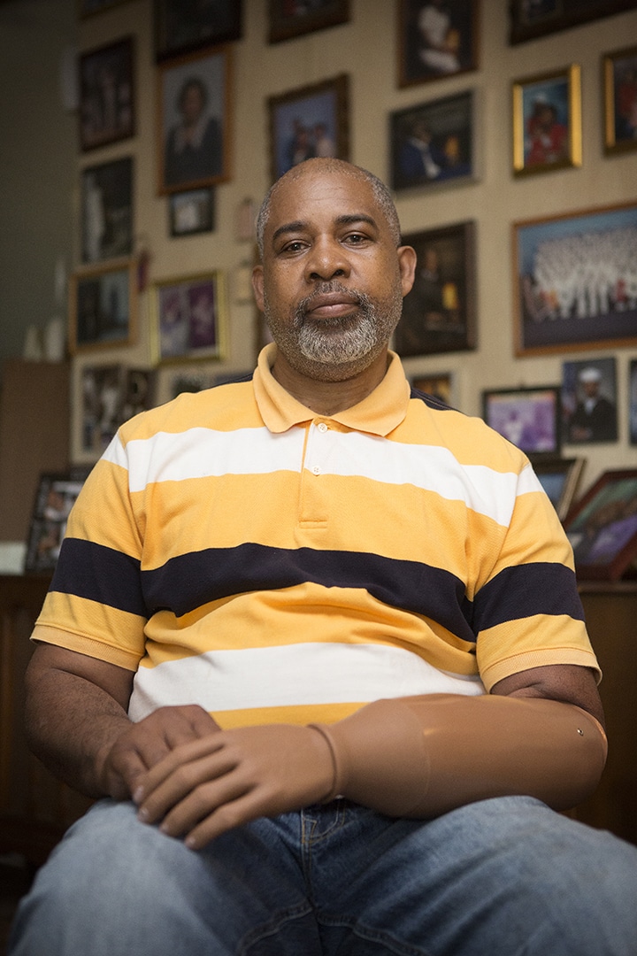 “I would still like to have my hand,” he said, “But I can’t bring it back. With the help of the Lord, I will make the adjustment and move on. There are some things that I used to do that I can’t do anymore, like lace up tennis shoes. I used to be able to get dressed in 15 to 20 minutes. Now it takes me an hour almost.” But, he said, he is looking forward to classes this week on using his prosthesis and hoping to learn an easier way to button than struggling with one hand.