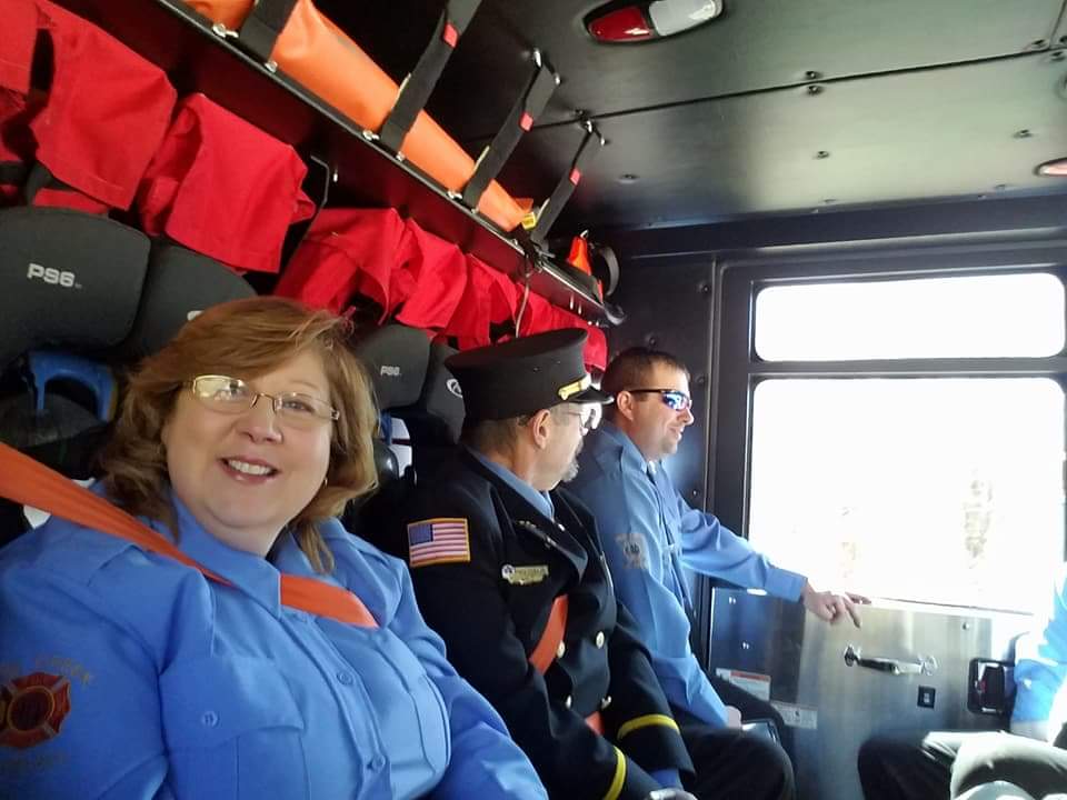 She is one of ten out of 49 active responders who respond to the most calls. She’s also on seven committees in the fire department and chairs two of them. She is the reporting secretary, as well, so she reports back to the state about every call that the department responds to.