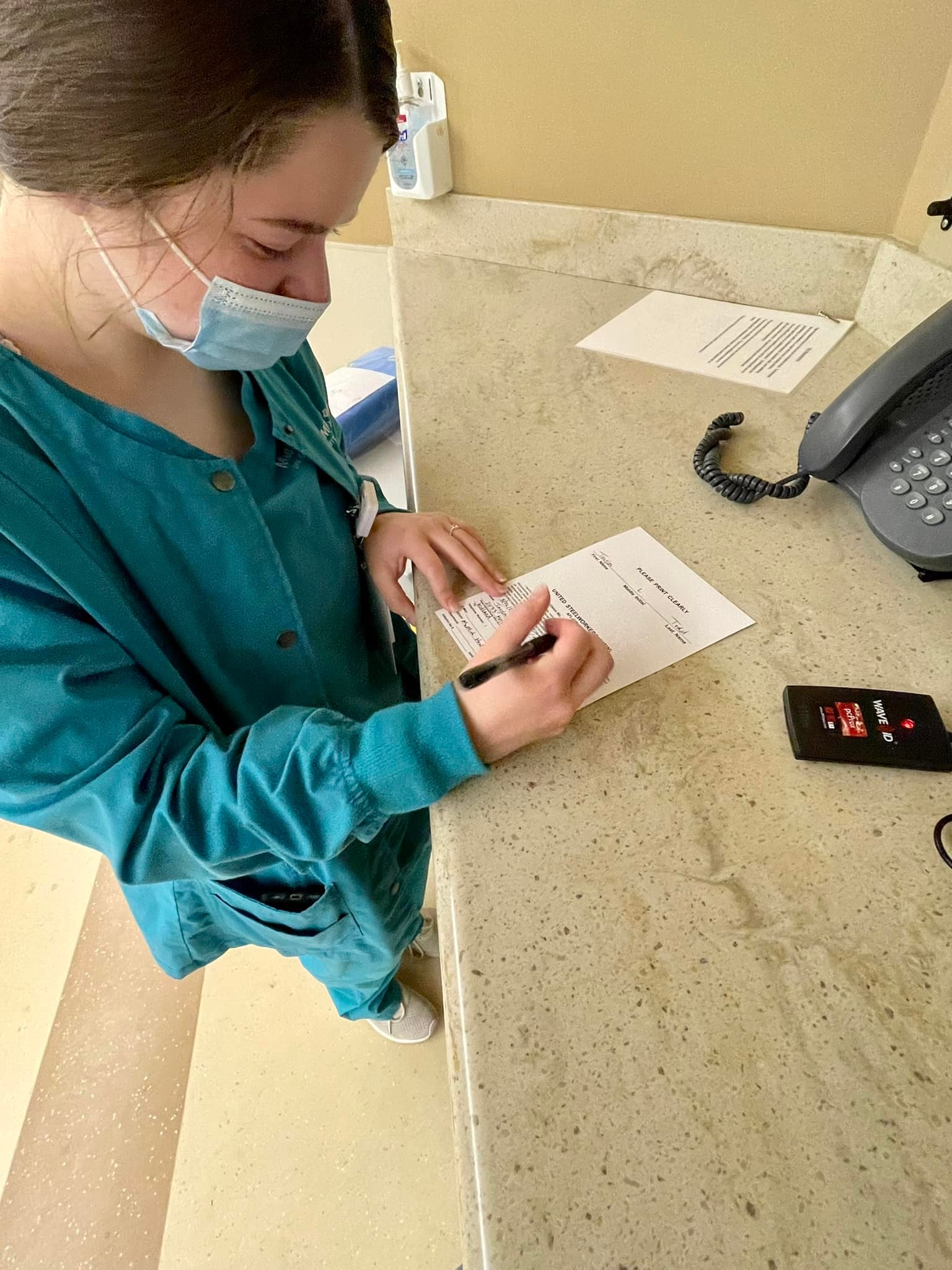 Taylor began working at the same facility as her father only a few weeks ago as a unit secretary. She is currently studying to become an ultrasound technician. For her, this job is ideal for multiple reasons.