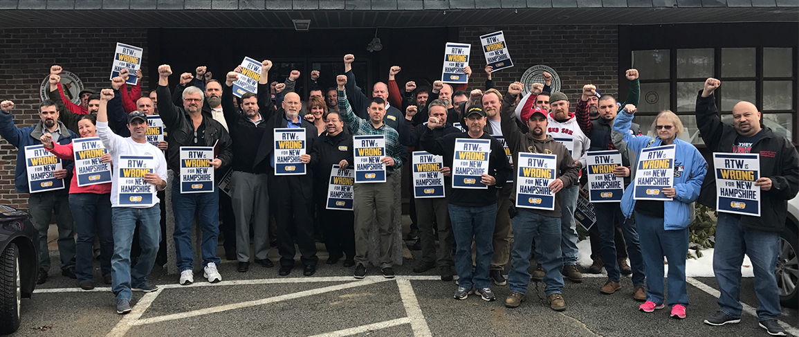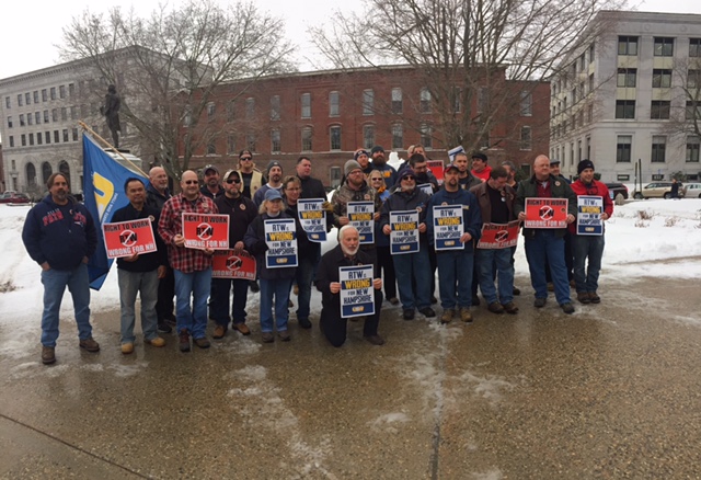 Steelworkers in NH rallying outside capitol against RTW.