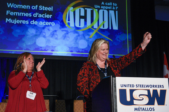 Delegates also converged on University Avenue in downtown Toronto for the Ontario Day of Action for Workers’ Rights, marching from the conference waving USW and Women of Steel flags while chanting “Hands Off!” and “Fight Back!”