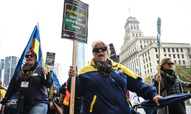 Local 9899 President Jackie Anklam participates in the Ontario Day of Action.