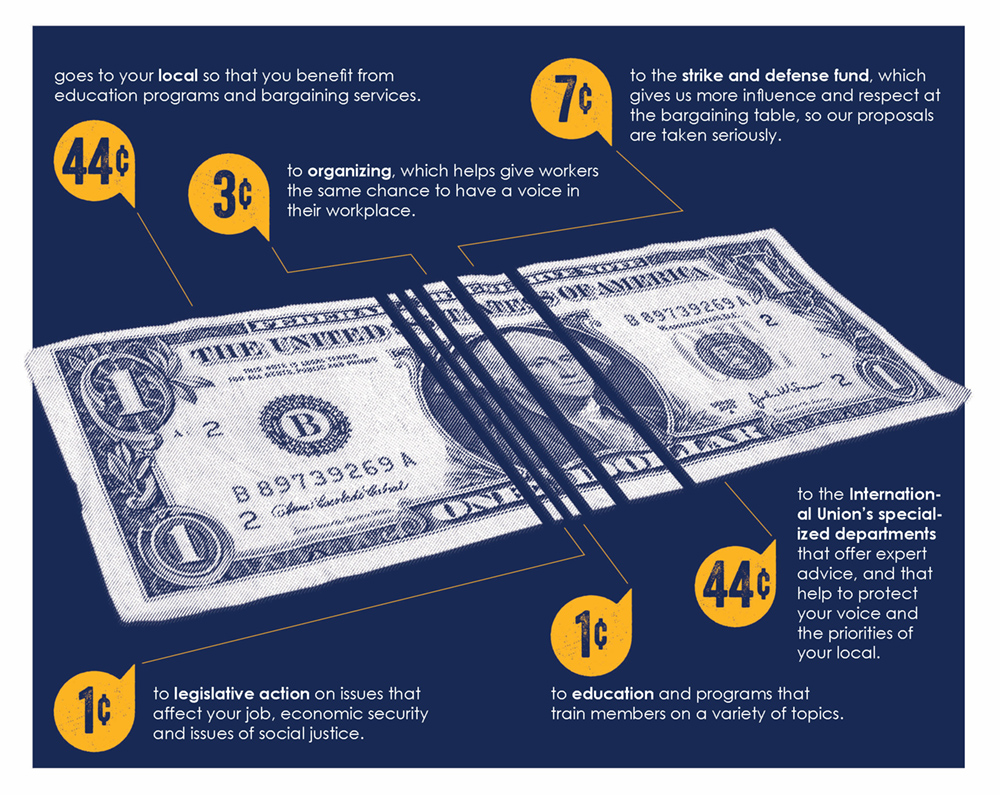 Dues are an investment that come right back to you through good contracts, quality education, and a wide range of union services.
