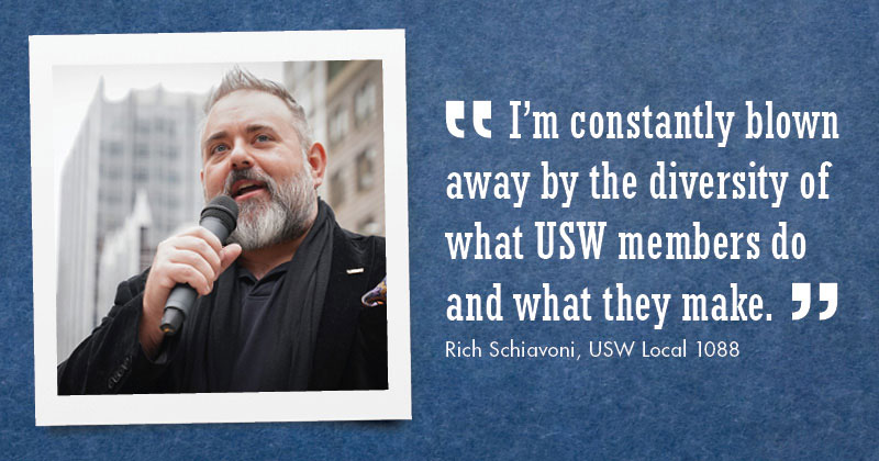 When Rich Schiavoni tells people that he is a member of the United Steelworkers union, they often will ask him what he makes.