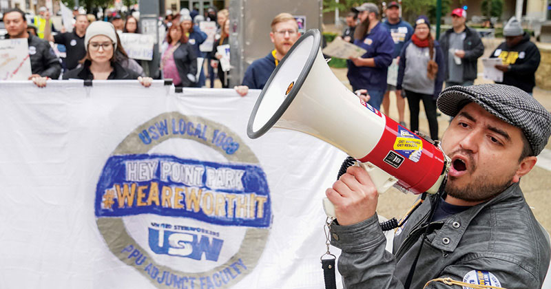 When part-time professors from Point Park and Robert Morris joined the USW in 2016, their goals were much the same as those the Pitt faculty is fighting for now – more job stability and living wages for adjunct professors. Over the term of their first three-year contract, the professors saw an overall pay raise of more than 21 percent.