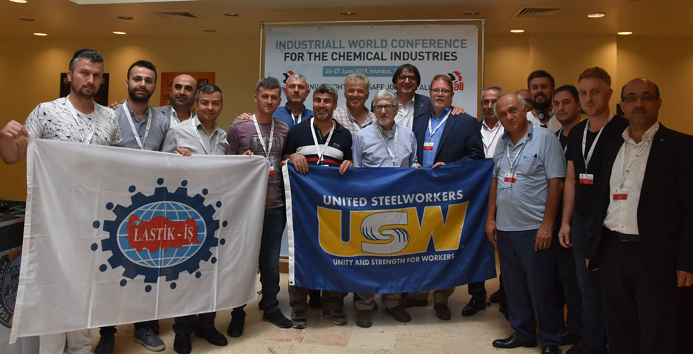 Kent Holsing, USW Local 12075 president and chairman of the DowDuPont North American Labor Council (DNALC), Doug Watts, USW BASF Group chairman, and USW International Affairs Director Ben Davis joined 230 delegates from 45 countries for the three-day conference at the headquarters of IndustriALL affiliate Petrol-0_ Sendikas1 in Istanbul, Turkey.