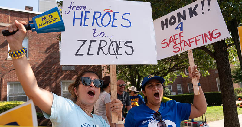 Despite the public outcry in support of the nurses, the company continued to resist members’ demands as the strike neared the three-month mark, and nurses remained on the picket line as this issue of USW@Work went to press after voting in mid-September to reject a proposed three-year deal.