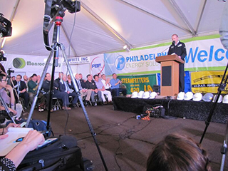 PICTURED: Philadelphia Energy Solutions Chief Executive Officer Gregory Gatta addresses the rally. Photos by Peter Denesowicz, PPD Associates