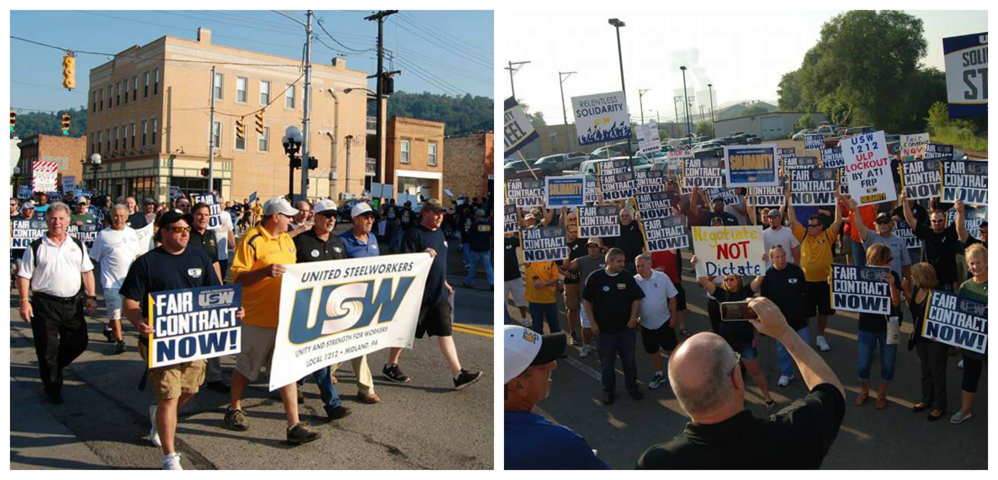 On Monday, August 17th, hundreds of members of USW Local 1212 and their families took to the streets in Midland, PA for a march to ATI’s plant gate.