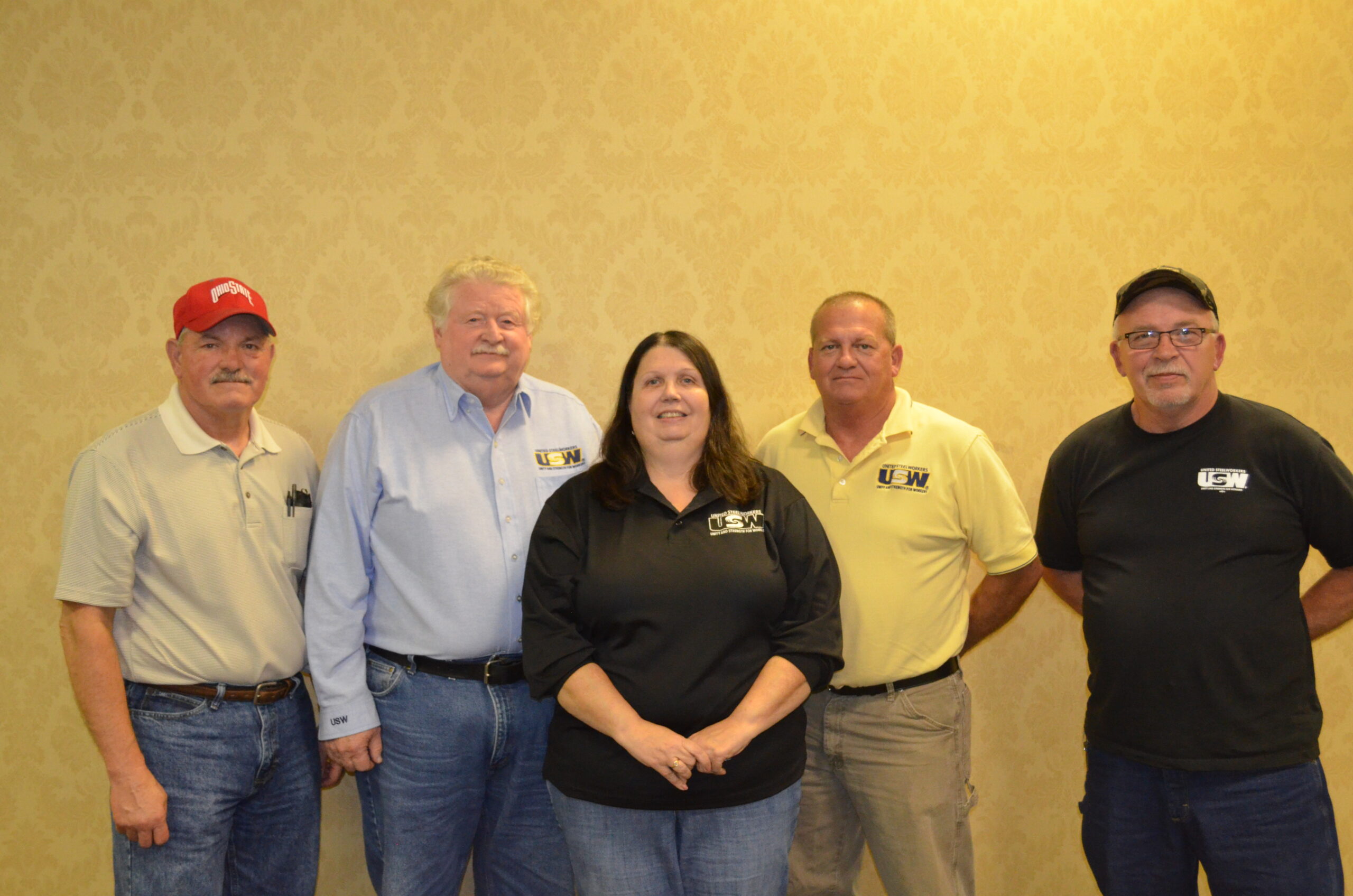 Local Union 1-689 officials (L-R): Vice President Larry E. Thomas, President John Knauff, Safety Representative Jeanne Webster, Division III Operations Grievance Committeeperson Brian Howell, and Safety Representative and Local Treasurer Lou Thompson. Photo credit: Mike Hancock, Local Union 9-562 retiree.