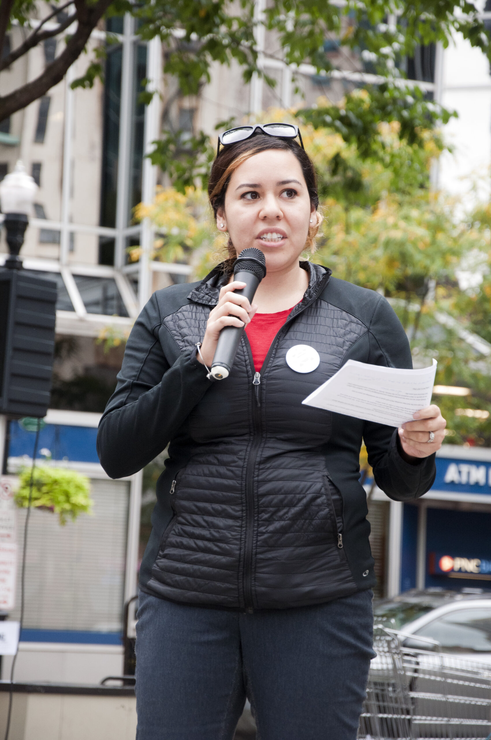 Outside Sen. Toomey’s headquarters on Grant Street, USW Vice President Fred Redmond spoke to the crowd by touching on the urgency and significance of the battle to save the program that has given so many young people a chance at the American dream.
