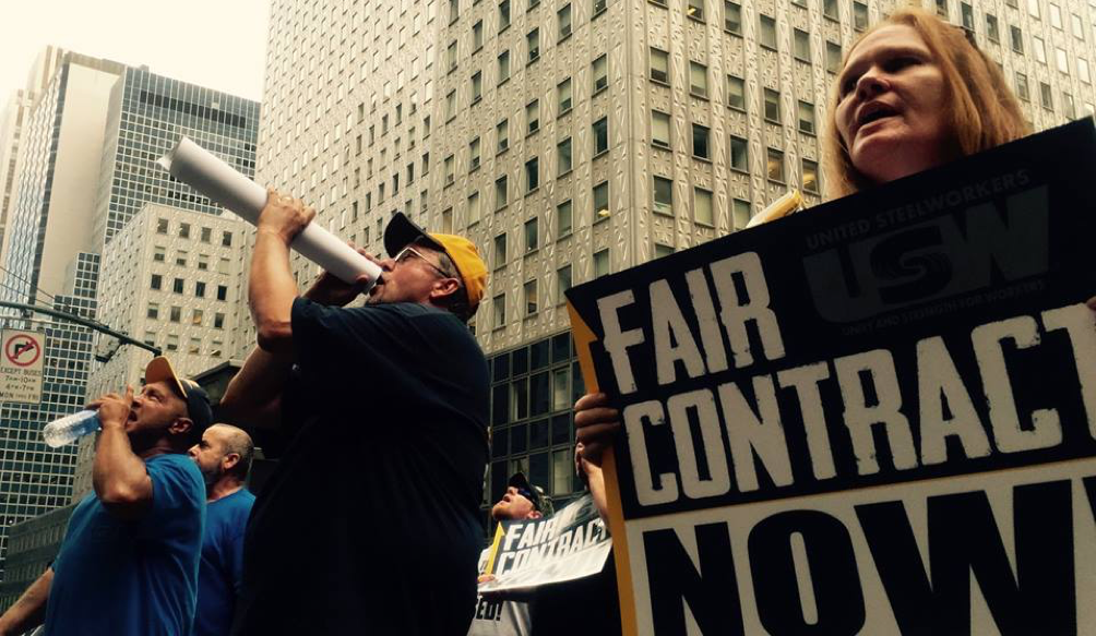 Fight Back Pittsburgh is the Associate Member Organization of the Steelworkers in Pittsburgh.  Since the start of the contract fight, Fight Back Pittsburgh activists have been mobilizing for actions and other events.  The group has been organizing weekly delegations to different picket lines around southwest Pennsylvania and on November 7th, Fight Back Pittsburgh organized a bus tour visiting picket lines in Brackenridge, Natrona Heights, Vandergrift, Latrobe, and Washington. And of course no picket line tour would be complete without delivering pizzas from Maddios and Mama Cheez to the picket lines in Brackenridge and Washington!