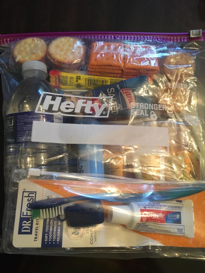As an organizer, Womer made being on-the-road into an individual service project by traveling with homemade “care bags” full of snacks, soap, water bottles and other things to leave with the homeless she encountered at stop-lights and traffic jams – she lost count of how many she’s given out after 100.