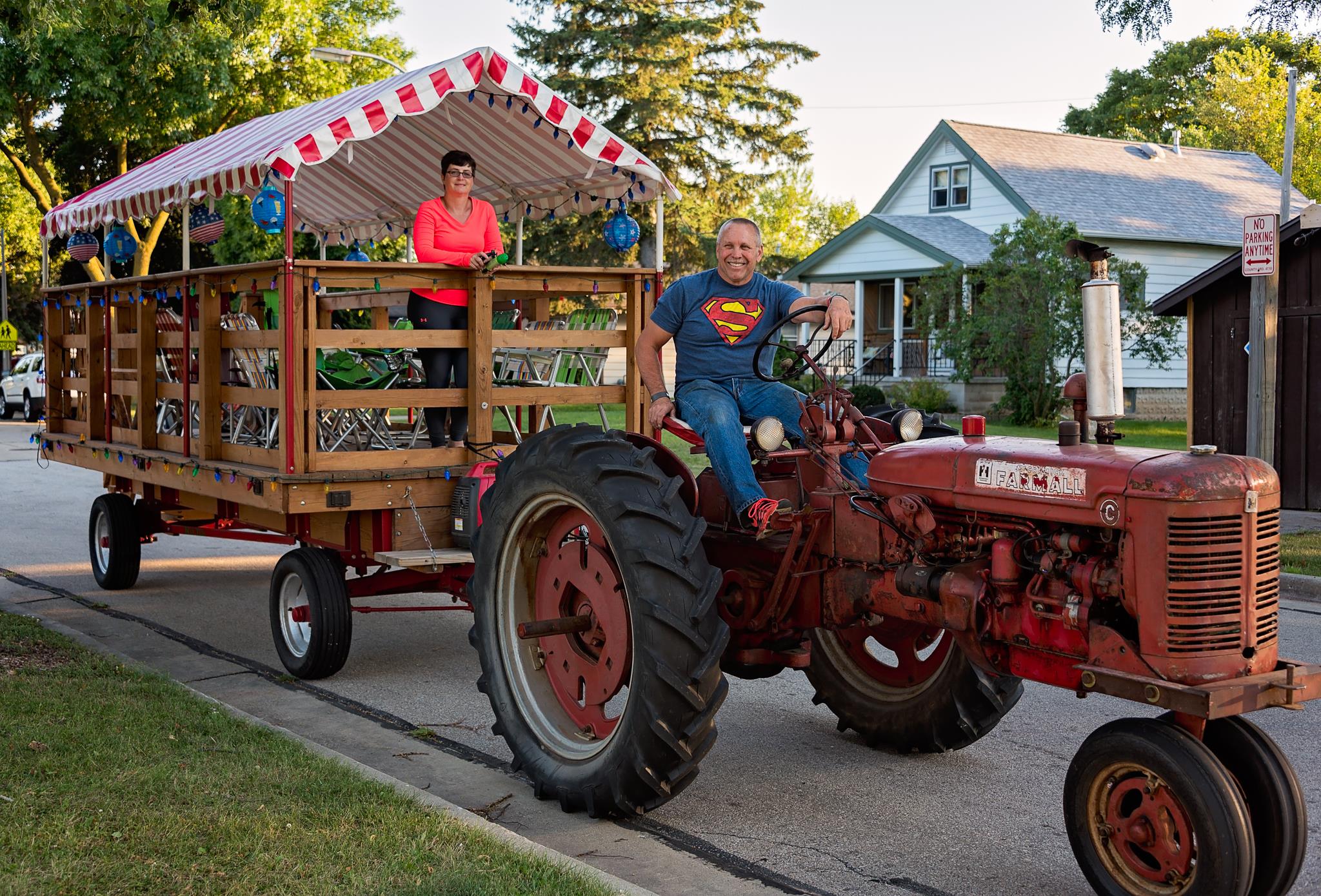 In love with all things Old Americana, Richard bought a tractor 20 years ago, and after stumbling upon a hay wagon frame, an idea suddenly clicked. He built a wagon to attach to his tractor and began riding up and down the streets of his neighborhood in West Allis, where he’s lived his entire life, and it was an instant hit. Families now wait outside their houses for Richard and his tractor to come by to give them fun rides around town, rides that provide opportunities for neighbors, who didn’t even know each other existed, to connect.