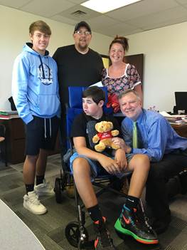 Adaptive strollers like the one Vinnie received from Variety are expensive; and it was about the same time that Keith was locked out by ATI that Vinnie outgrew his old chair. Vinnie’s mother Rachelle said, “Vinnie wants to be in school but he has seizures. The stroller enables him to stay at school safely after he bounces back from a seizure.”