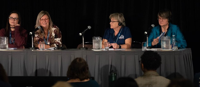 Adriane Pavo (far right) moderates a panel on Raising the Bar on Women’s Health and Safety.
