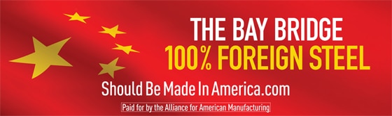 Emeryville, CA (Mar. 26) – A national Should Be Made in America campaign by the non-profit, non-partisan Alliance for America Manufacturing (AAM) kicks off today at the new San Francisco-Oakland Bay Bridge, a massive construction project that was outsourced to China at the cost of thousands of American manufacturing jobs.