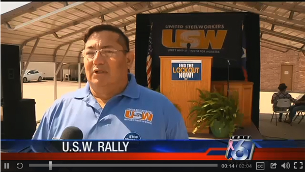 Locked out Sherwin Alumina employees hold rally after year anniversary of lockout