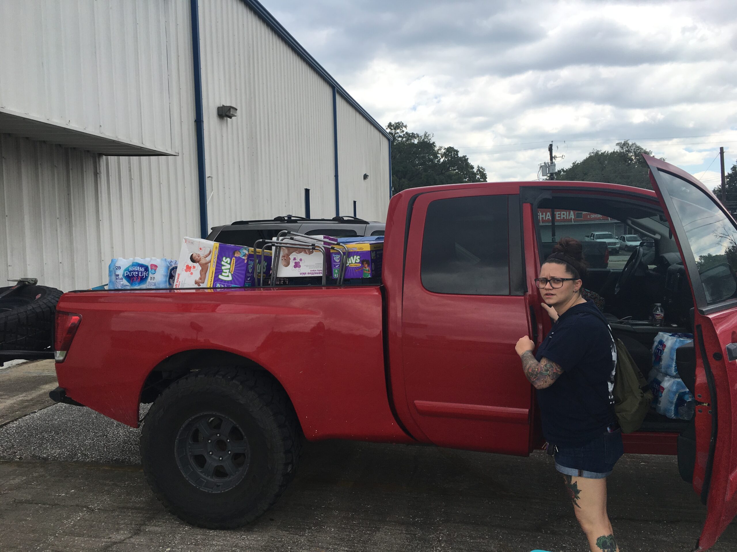 Like Brandon, Felicia Weir of Santa Fe, Texas, is a USW refinery worker with a high-riding truck. Even after her home flooded, she drove for hours on Wednesday, backing up constantly to circumvent flood-closed roads, to get baby formula and clothes for a couple who had been plucked from their rooftop with an infant granddaughter and two other young grand kids.